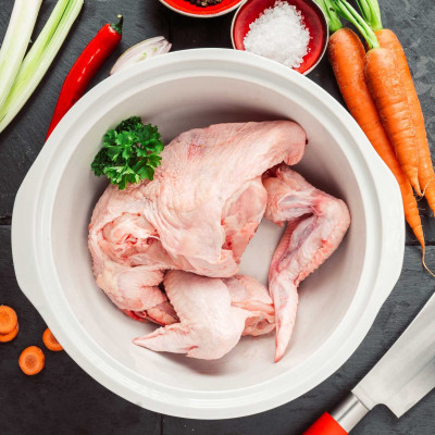 Unsere Suppenhuhnteilchen vom Biebrza-Huhn, bestehend aus Hühnerkarkasse und Flügeln, sind die ideale Wahl für diejenigen, die eine essenzielle und aromatische Brühe vom Landhuhn zubereiten möchten. Dank der sorgfältig ausgewählten Hühnerteile für die Brühe wird der Fond reichhaltig und intensiv im Geschmack. Diese außergewöhnliche Geflügelbrühe-Basis bildet eine hervorragende Grundlage für die Zubereitung einer klassischen Brühe, aber auch vieler anderer Suppen und Saucen. Es genügt, Gemüse wie Karotten, Sellerie und Zwiebeln sowie aromatische Gewürze hinzuzufügen, um eine Suppe zu kreieren, die an kühleren Tagen wärmt und beruhigt. Probieren Sie diesen natürlichen Geschmack, der Sie in Erinnerungen an familiäre, häusliche Mahlzeiten versetzen wird. Wie man sagt – „Die beste Brühe ist die, die die Familie am Tisch vereint!”