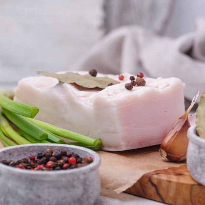 Gesalzener Speck ist eine klassische, traditionelle Wurstware, deren Rezeptur auf nur zwei Zutaten basiert: hochwertigem Speck mit Haut und Steinsalz. Natürliches Pökeln in Salz ermöglicht es, den intensiven Geschmack zu bewahren und gleichzeitig das volle Aroma des Schweinefetts hervorzubringen. Es ist ein Produkt mit langer Haltbarkeit, das seit Jahrhunderten ein wesentlicher Bestandteil der altpolnischen und osteuropäischen Küche war.