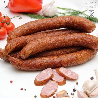 Die Turosieńska-Wurst ist eine wahre Klassik unter den polnischen Wurstwaren, die sich durch ein einzigartiges Aroma und Geschmackstiefe auszeichnet. Hergestellt aus hochwertigem Schweinefleisch (122 g pro 100 g Produkt), mit Zugabe von Rindfleisch, gewürzt mit Knoblauch, Pfeffer, schwarzem Senf sowie einer Note von scharfem Paprika und gemahlenem Wacholder, bildet sie eine einzigartige Geschmackskombination. Traditionell in natürliche Schweinedärme gefüllt, ist sie ideal sowohl warm als auch kalt.
